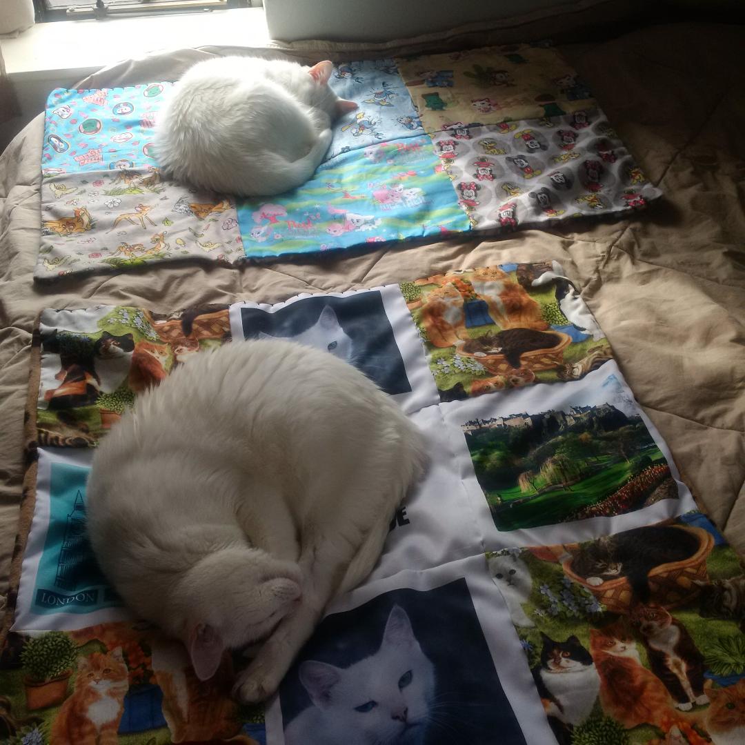 The real Angus and Edmond enjoy beautiful quilts, hand-made by Donna Hilley
